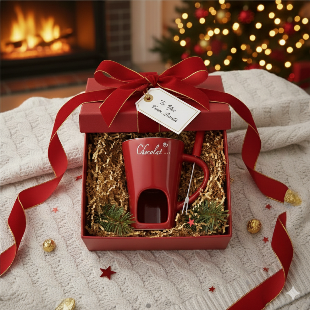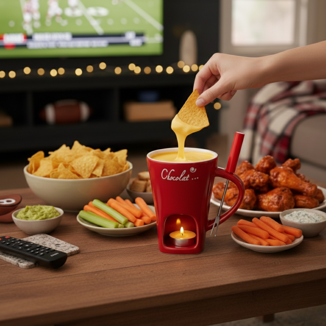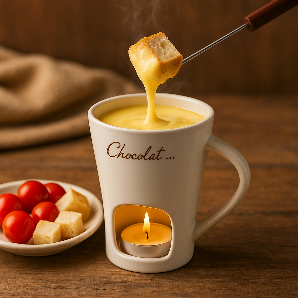 Elevate your afternoon entertainment with melted cheese and chocolate. Founduwie is the ultimate dipping mug and the perfect gift this holiday season.
