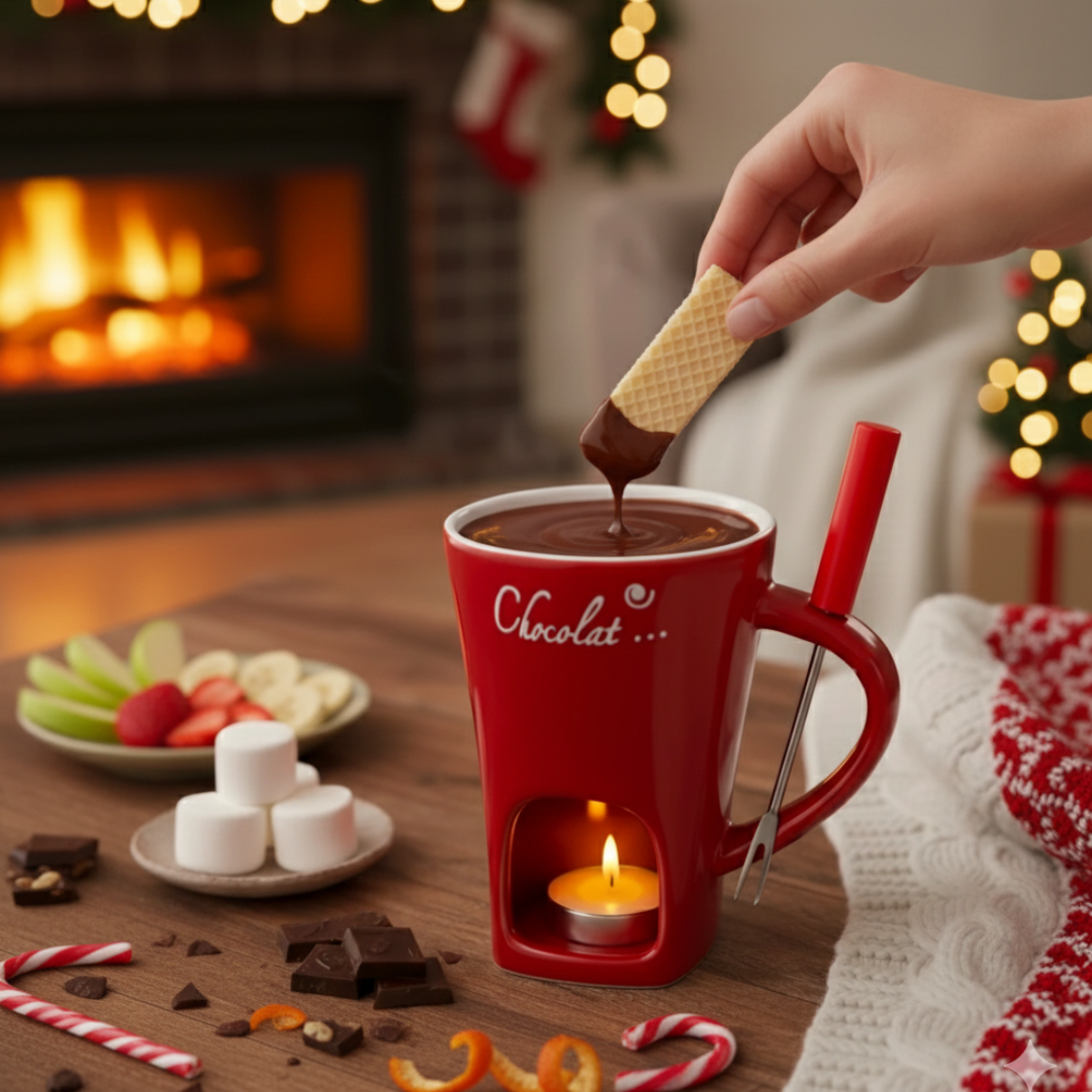 Turn strawberries, marshmallows, and bite‑size treats into a mini celebration. The Fonduwie™ Ceramic Fondue Mug melts and keeps chocolate (or cheese/caramel) velvety using a simple tea‑light—no cords, no bulky pot. Its heat‑retaining ceramic, built‑in candle chamber, and handled mug design make indulgence effortless whether you’re sharing with someone special or savoring a solo treat.